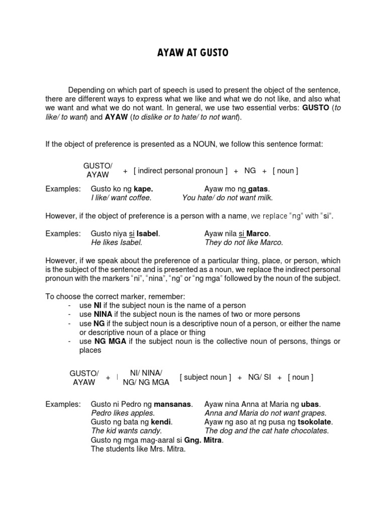 Ayaw At Gusto Object Grammar Noun